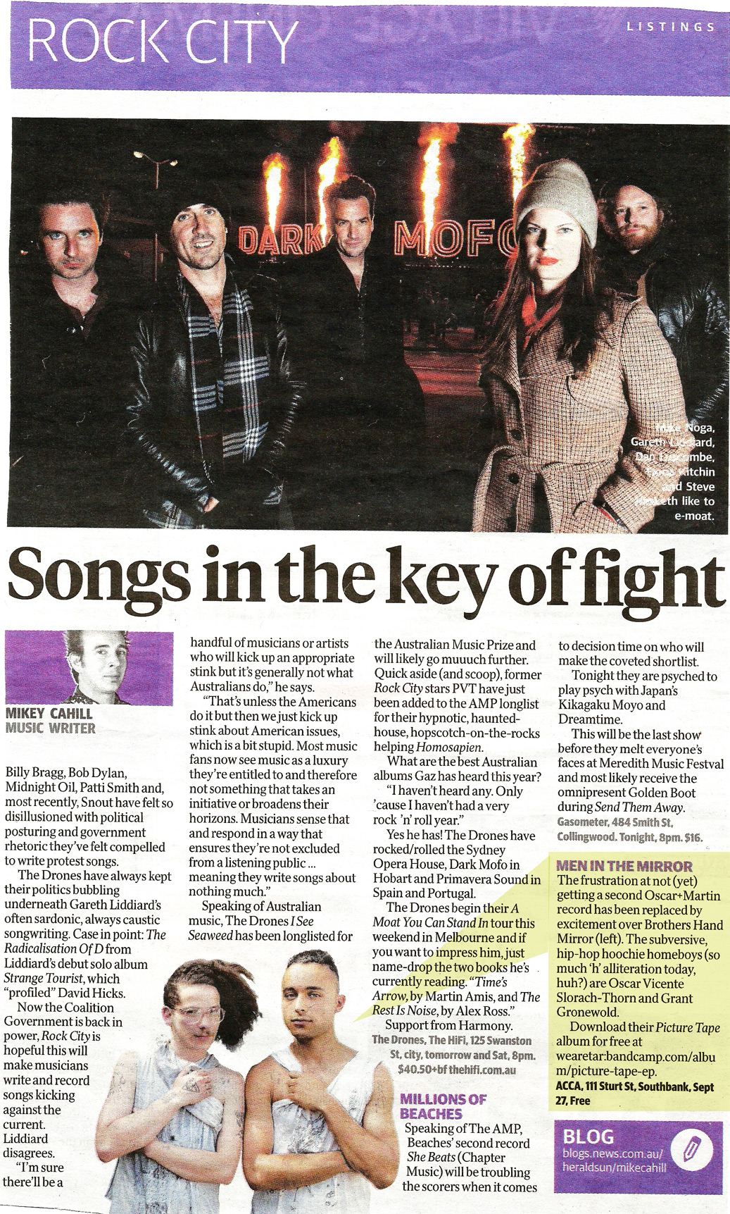 Excerpted from Mikey Cahill’s 12 September Rock City column in the Herald Sun. Read Mikey’s blog at blogs.news.com.au/heraldsun/mikeycahill.