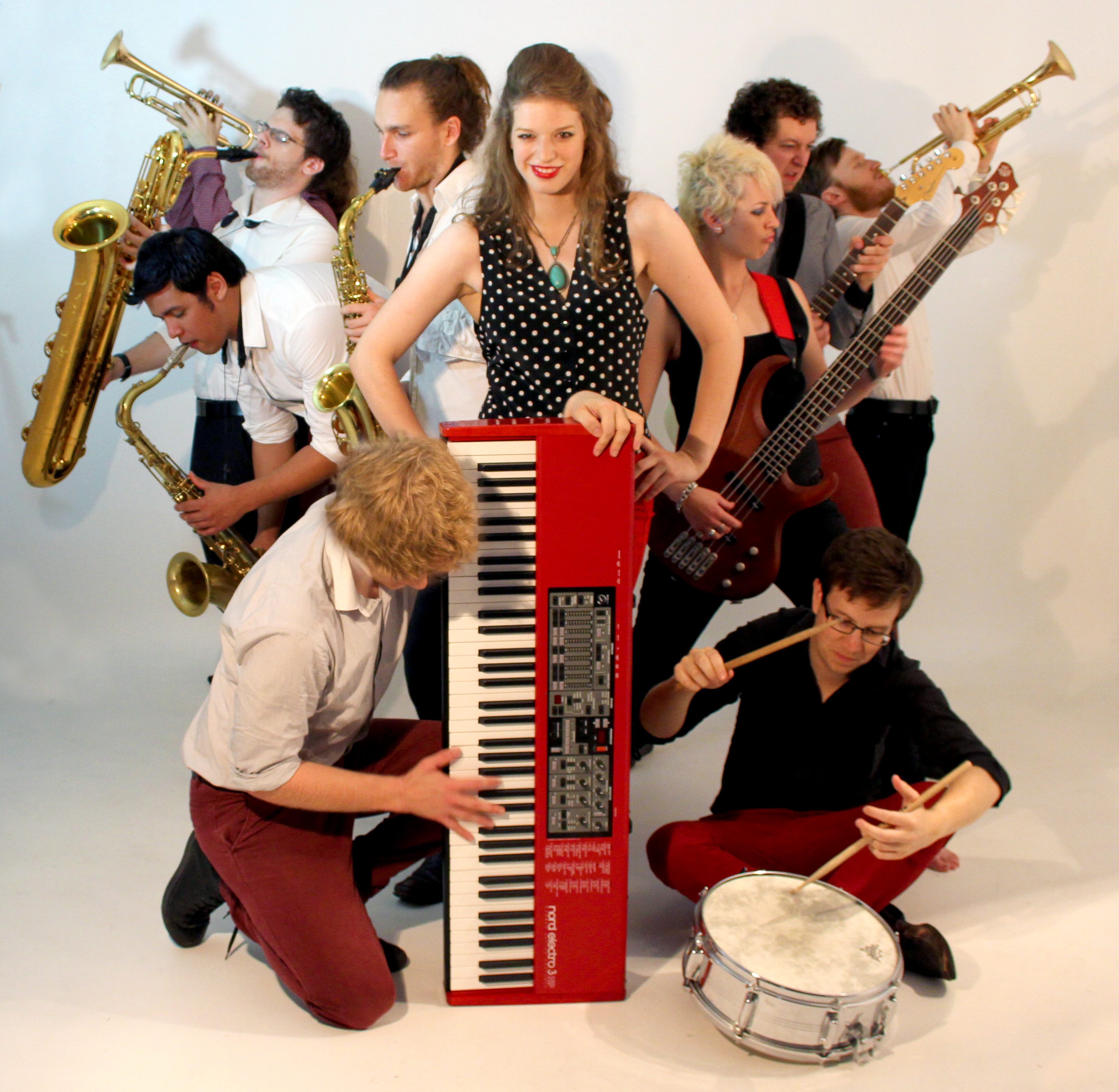 Their classic, ol’skool sound borrows influences from Surf Rock, Neo-Soul and Hip Hop and mixes it all up to create their own big, brassy funkfest! His Merry Men bring a fat 9-piece sound and dance party attitude to every gig. They sport suave outfits, face melting dance moves and a dynamite 4-piece horn section, the ‘Hell Yeah Horns’.