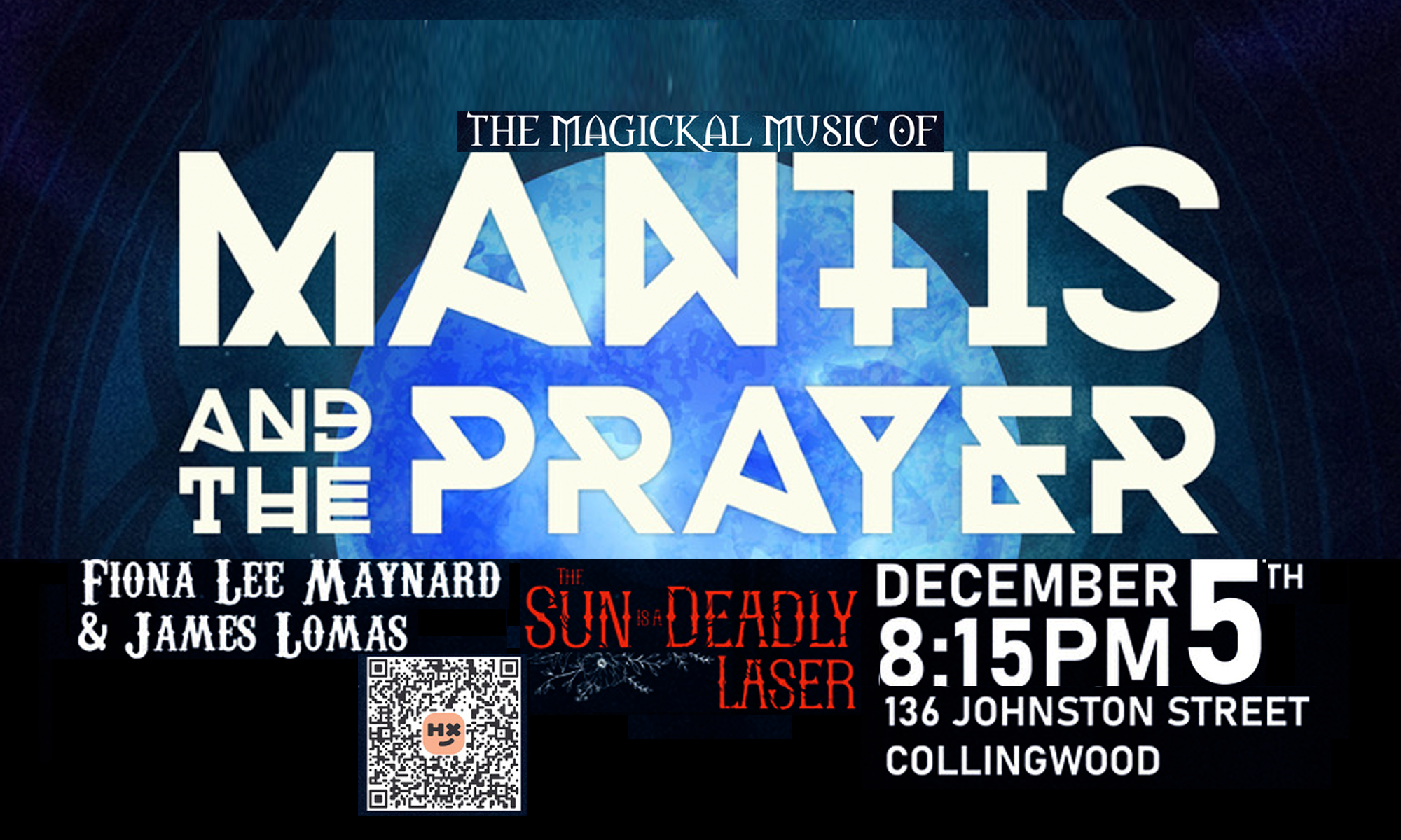 About Marie Laveau:Marie Laveau was born in 1801 in New Orleans where her legendary powers were feared, respected and celebrated by the masses. Her abilities included all forms of spell casting to bring luck, love, prosperity, healing and protection. She was also said to lay fearsome curses unto the unfaithful lover or those who gave bad legal advice under her eye. She was well known to all for visiting and ministering to prisoners, extending altruistic gifts to the poor and presiding over all manner of spiritual rites in her role as Voodou Queen of New Orleans.About Mantis & The Prayer:Ever since bluesman Robert Johnson struck a deal with the devil there’s been a link between esoterica and rock’n’roll. There was a revival of occultism in rock in the ’60s. Take the arcana around the Beatles for instance – rumour had it that Paul McCartney was dead and you could make out John Lennon singing “I buried Paul” if you played Strawberry Fields backwards. The ’70s had another crack: Bowie was at peak mysticism in his Starman days and Led Zepp took to quoting occultist Aleister Crowley. In 2013 Ben Lee took a trip and made a concept album about it (Ayahuasca: Welcome to the Work) and now we’ve got Mantis and the Prayer, a four-piece Melbourne-based band, lifting the veil between our world and whatever the hell else is out there. – BEAT MAGAZINE